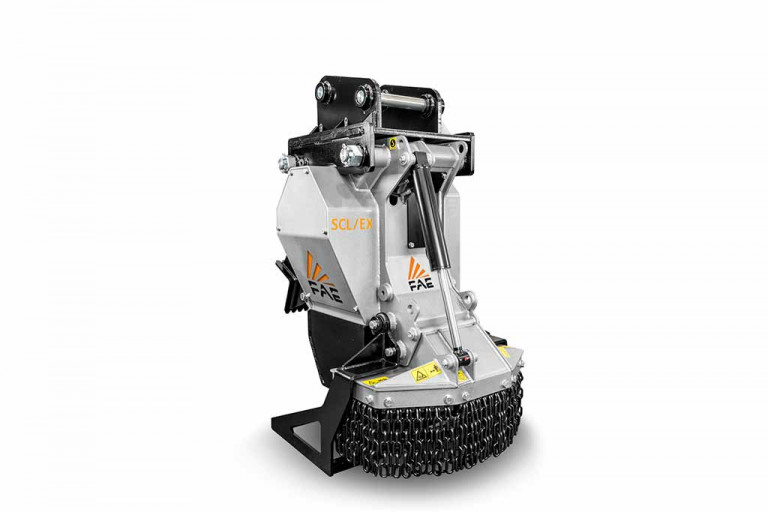 After great success of the SCM/EX/VT excavator stump cutter, FAE is proud to introduce the SCL/EX/VT stump cutter for excavator. The SCL/EX/VT is for excavators ranging from 7 to 15 t. Thanks to the heavy duty and larger disk, stump removal is made easier in any situation; even when using medium and small size excavators. This unit is compact, high performing and is equipped with a hydraulic door to control the exit of debris.
