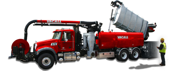 Vacall AllJetVac combination sewer cleaners with high dump option enables operators to raise, shift and tilt the debris tank to dump material faster and more efficiently into municipal dewatering containers, avoiding the need for dangerous ramps.