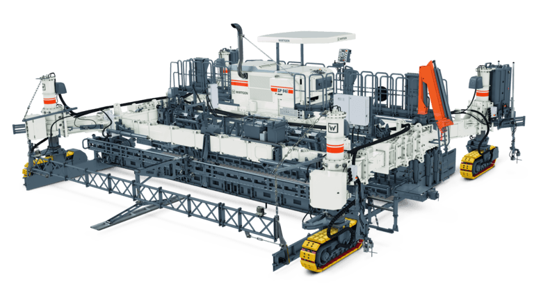 The intelligent, electronic steering and control concept ensures precise handling of the four crawler units and thus precise concrete paving. -