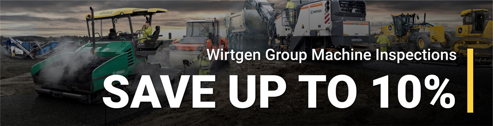 Offer valid on qualifying purchases made between January 1, 2026 and March 1, 2026. Through the Wirtgen Group Machine Inspection Program, receive 10% off parts and 5% off labor (shop/field) if dealer installed or 7% off parts if customer installed. Discount code WRINSPECT. Some exclusions may apply; see your Papé Machinery parts counter representative for full details.