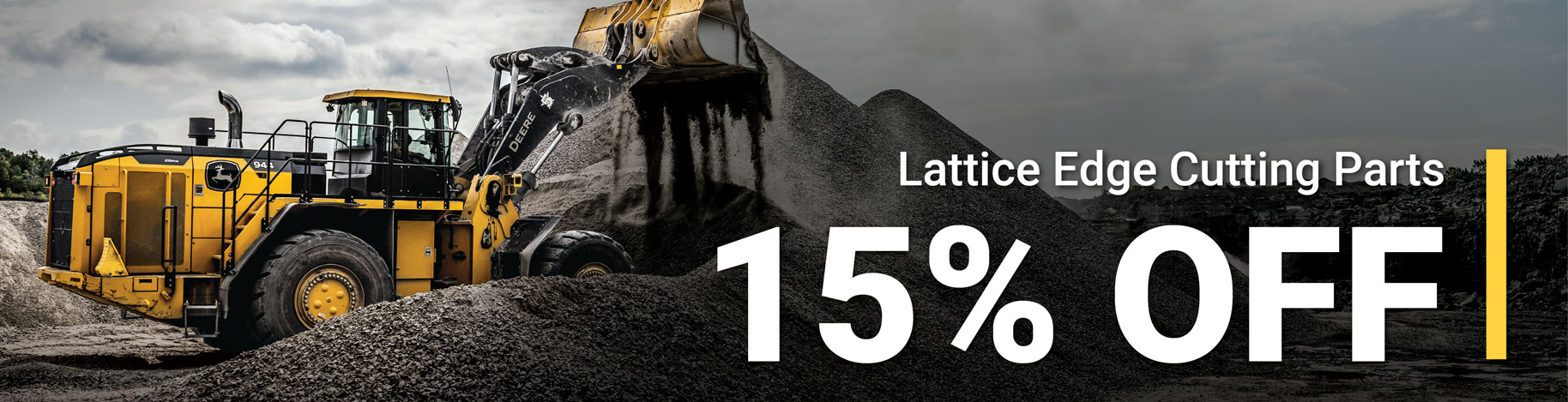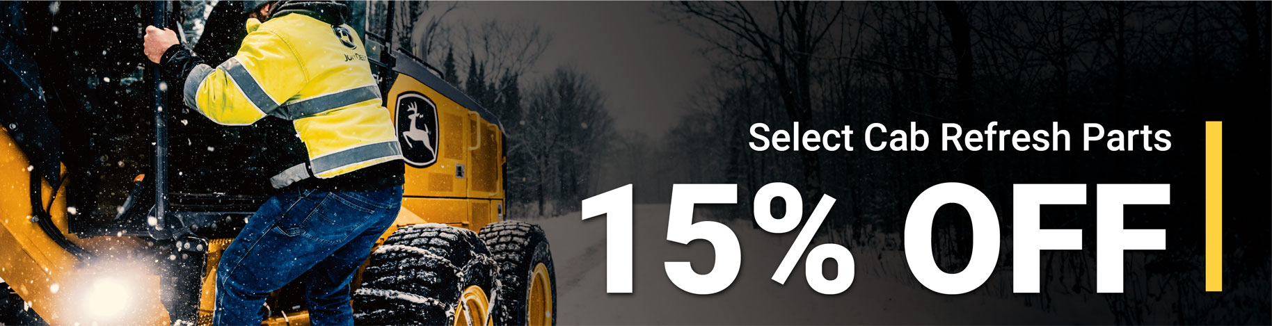 Offer valid on qualifying John Deere components, to be applied to the total purchase price before applicable taxes. Offers valid during the respective program dates listed above, at participating John Deere dealers in the US & Canada. Receive 15% off select components when qualifying parts are purchased. Other restrictions may apply. Offer cannot be combined with any other offer and may be discontinued or modified without notice at any time. No cash value. See your John Deere dealer for details.