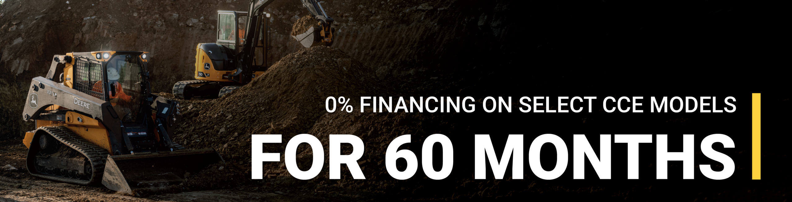 0% for 60 months: Offer valid on qualifying purchases made 01 April 2026 through 30 June 2026. Subject to approved installment credit with John Deere Financial, for commercial use only. Down payment may be required. Average down payment is 10%. 0% APR for 60 months only. 0% APR is not available with cash discount. Qualifying equipment includes the following models: 316 P, 317 P, 318 P, 320G, 324G, 324 P, 325G and 331 P. Taxes, freight, setup, insurance, fees, and delivery charges could increase monthly payment. Available at participating U.S. dealers.